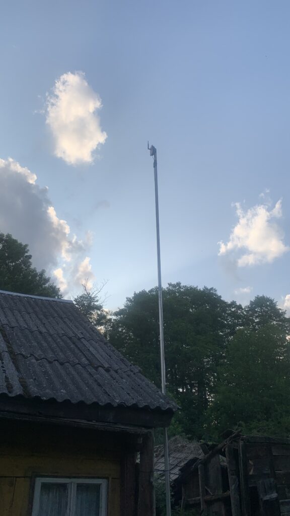 Projekt urządzenia montowanego na maszcie, na dachu budynku lub przy domu.